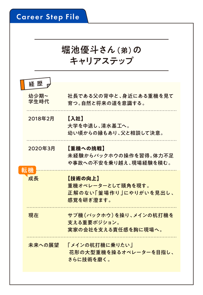 今回スポットライトを当てた高卒社会人は、現場の最前線で汗を流す弟の堀池優斗(ほりいけ・ゆうと)さん。また、優斗さんの兄で経営管理を担っている堀池柊司(ほりいけ・しゅうじ)さんにもお話を伺いました。