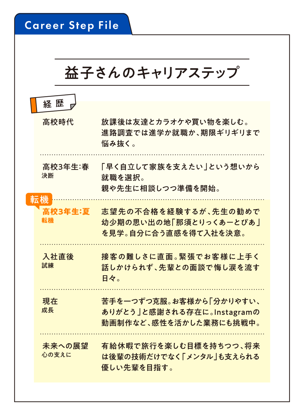 益子さんは高校生の頃、進学か就職かで悩んでいた時期も……。